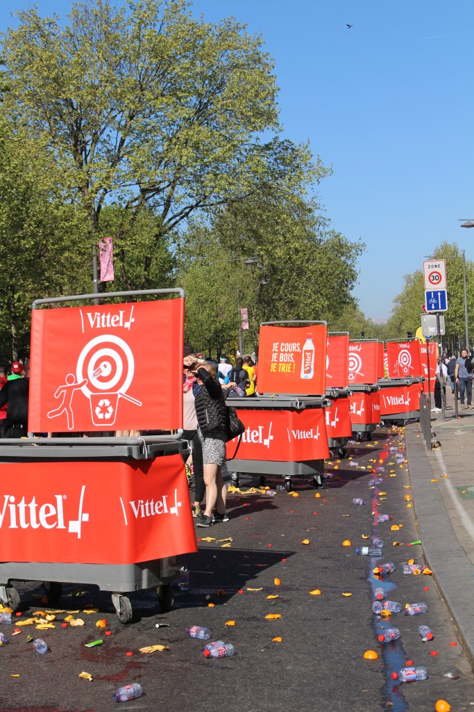 I wonder if the 19 tons of oranges, 7 tons of apples, 440,000 sugar cubes, 2 tons of dried fruit and nuts, and 100,000 water bottles on refreshment stations along the route will be enough to keep the marathoners energized and cool. It’s only April but it’s 25 degrees. I’m evaporating and I’m standing still.