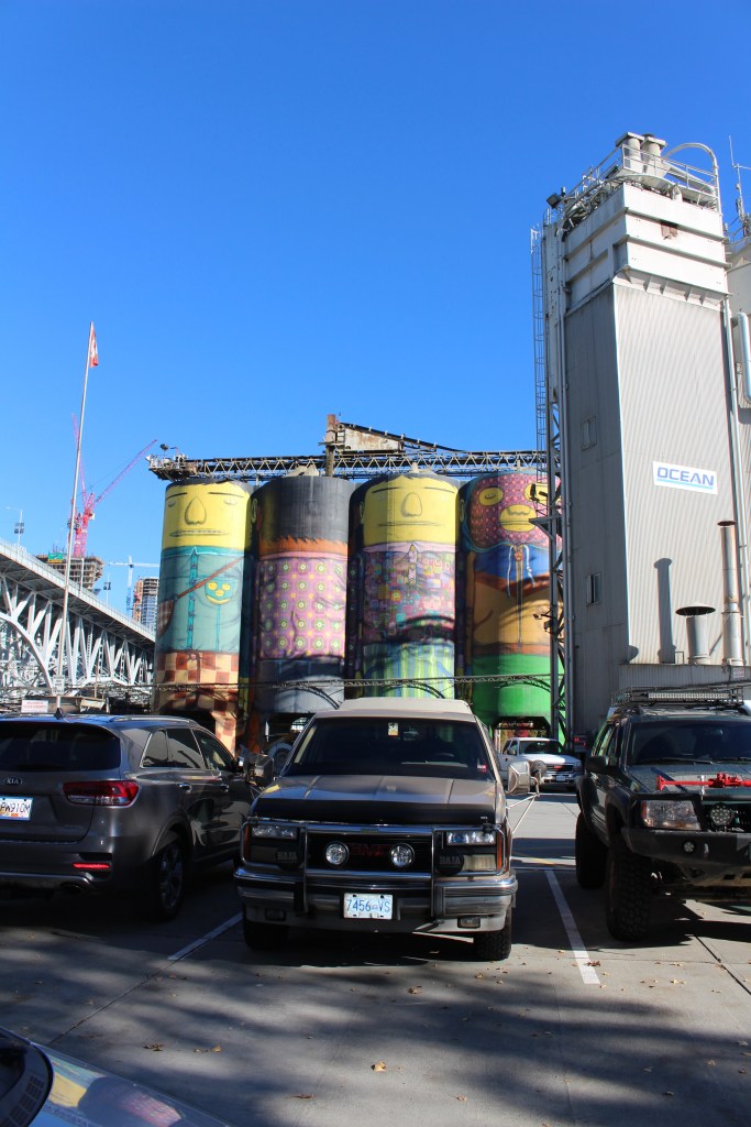 Remnants of its past contribute to the industrial atmosphere – a rusty yellow crane overlooks the creek, rippled and repurposed corrugated iron structures house the former Emily Carr School of Art. And colourful towers monitor a concrete factory churning out gravelly sludge.